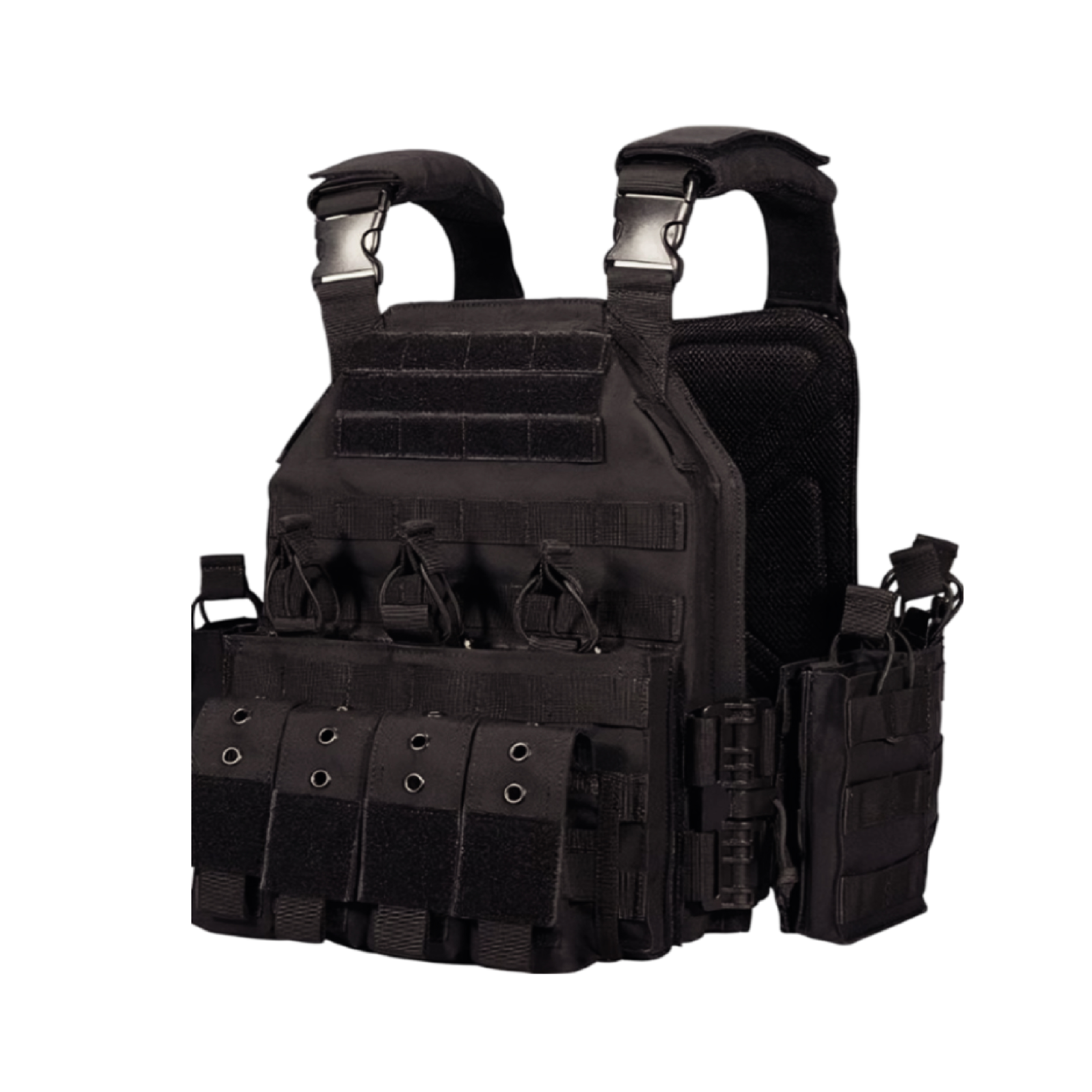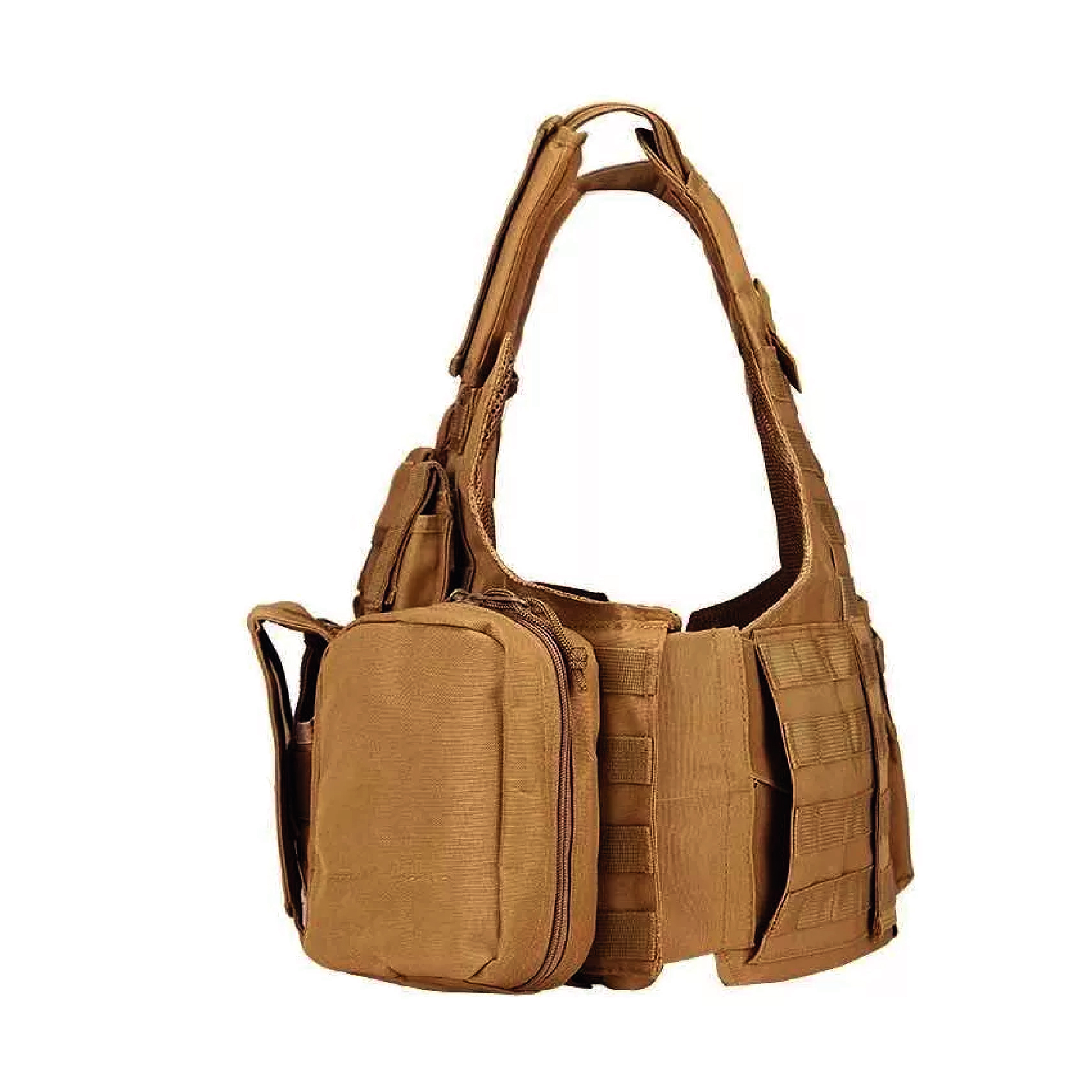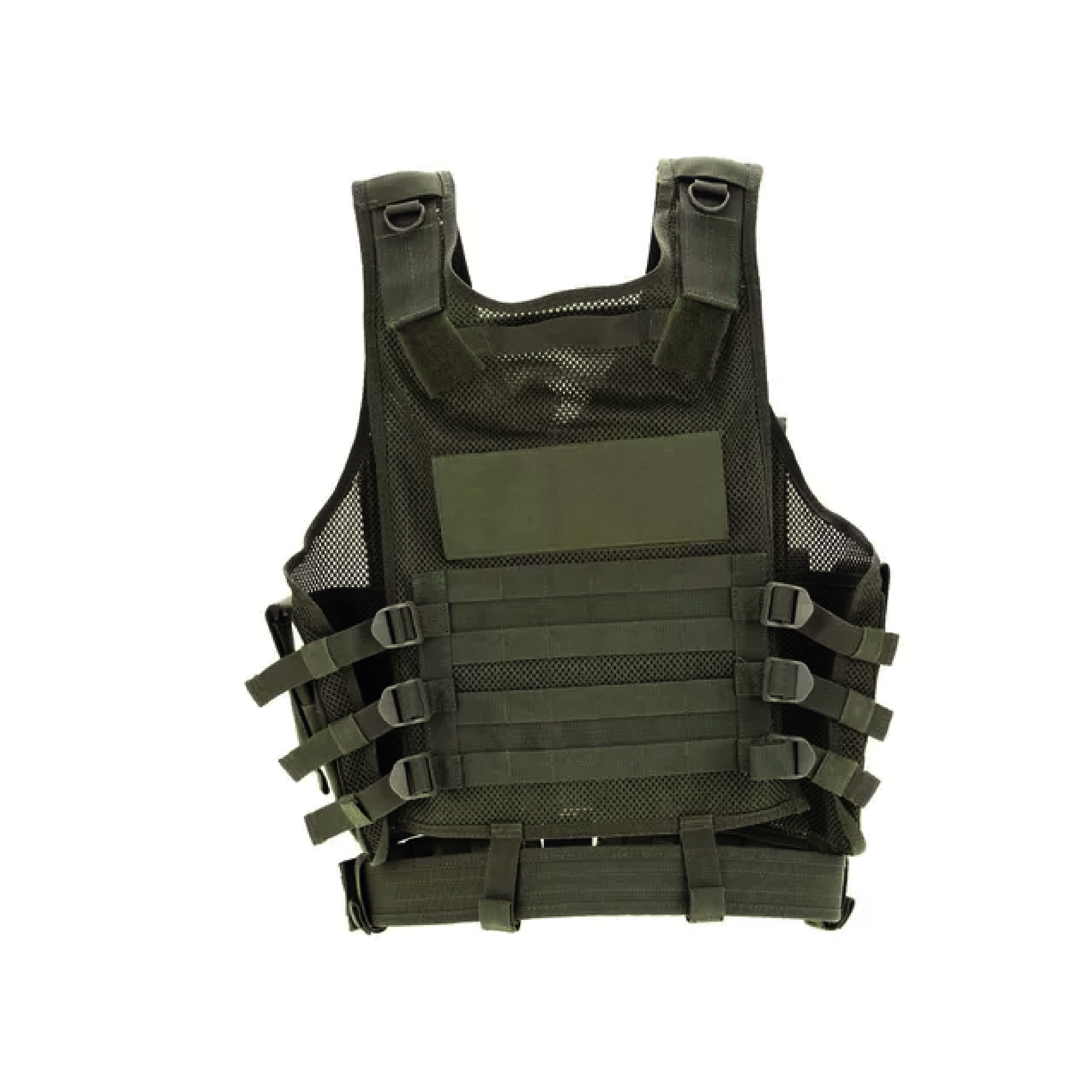Este chaleco táctico desmontable ofrece versatilidad, con compartimentos en el pecho y el abdomen para un acceso rápido al equipo. El sistema MOLLE permite añadir accesorios como cargadores de rifle y fundas. Con hombreras acolchadas y espalda cruzada, ofrece la máxima comodidad durante operaciones prolongadas. Fabricada en doble lona impermeable y totalmente personalizable.