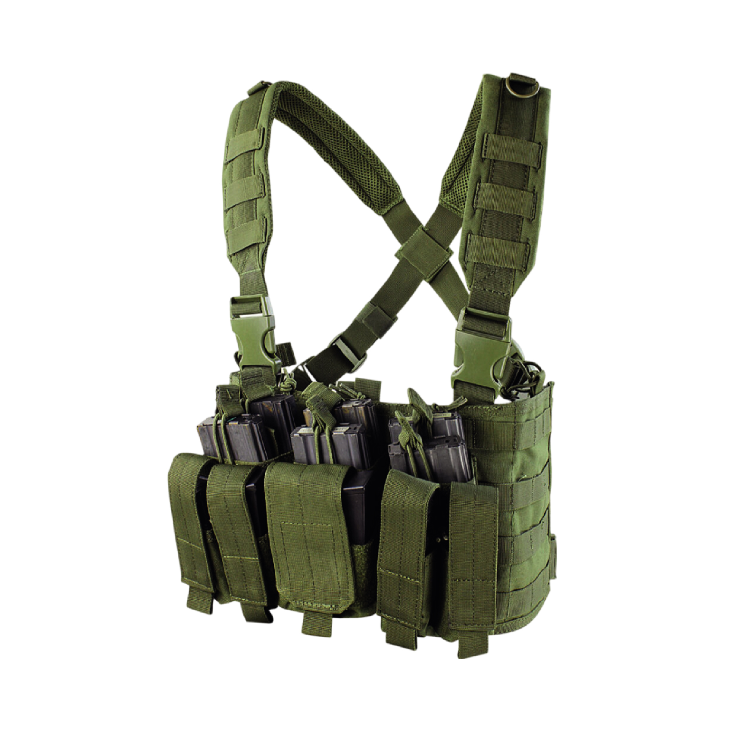 Diseño modular en cuatro partes: Total adaptabilidad en cualquier misión. • Materiales de alta resistencia: Doble lona y malla para máxima durabilidad. • Completo sistema de bolsillo: Espacio optimizado para carga dores y municiones.